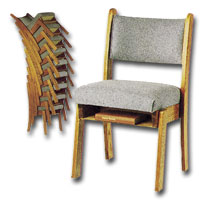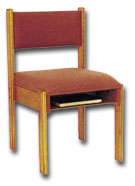 CHOIR CHAIRS Wood stacking choir chairs are Oak framed and finished, some with a bookracks underneath the seat and other using a ganging bookrack between chairs. All our wood framed chairs are time tested using a leg fastening process to the Oak framed seat body with double dowels and double strews. |