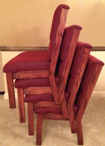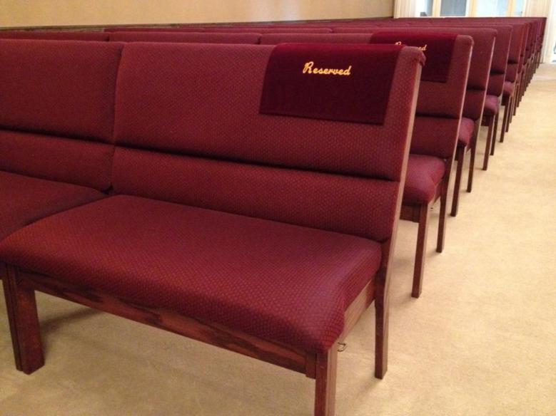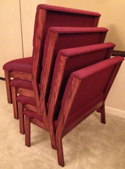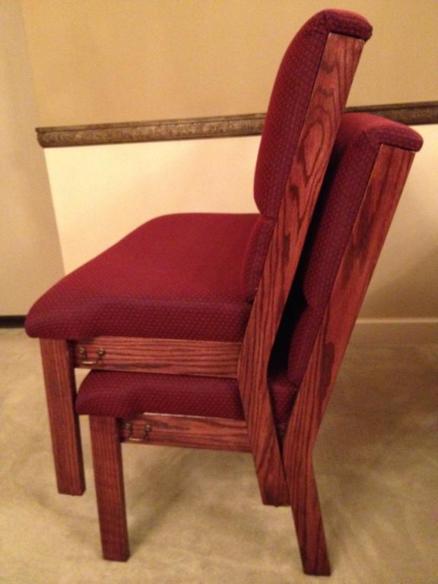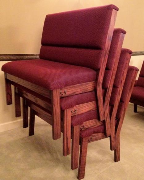 STACKER SEATING The "Stacker" seating option provides flexibility that many funeral homes desire allowing the chapel area to function also as another viewing area. This seating is most comfortable, yet can be easily moved and stacked as shown. When placed as a pew like seating each section gangs allowing several sections to accommodate continuous seating much like a pew. |